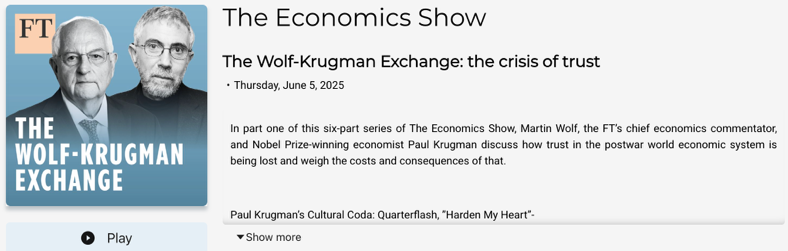 △克魯格曼在《金融時報》播客節(jié)目中,對特朗普政府的關(guān)稅政策進行了尖銳批評