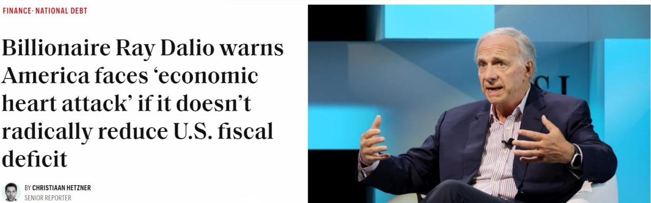 美國橋水基金創(chuàng)始人達(dá)利歐此前更是警告,如果不能有效控制財(cái)政赤字和債務(wù)規(guī)模,美國經(jīng)濟(jì)遲早會“心臟病發(fā)作”。