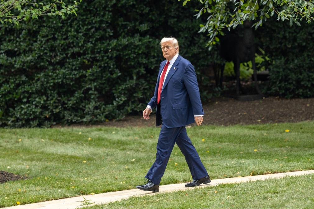 8月1日,在美國(guó)首都華盛頓白宮,美國(guó)總統(tǒng)特朗普走向南草坪。新華社記者胡友松攝