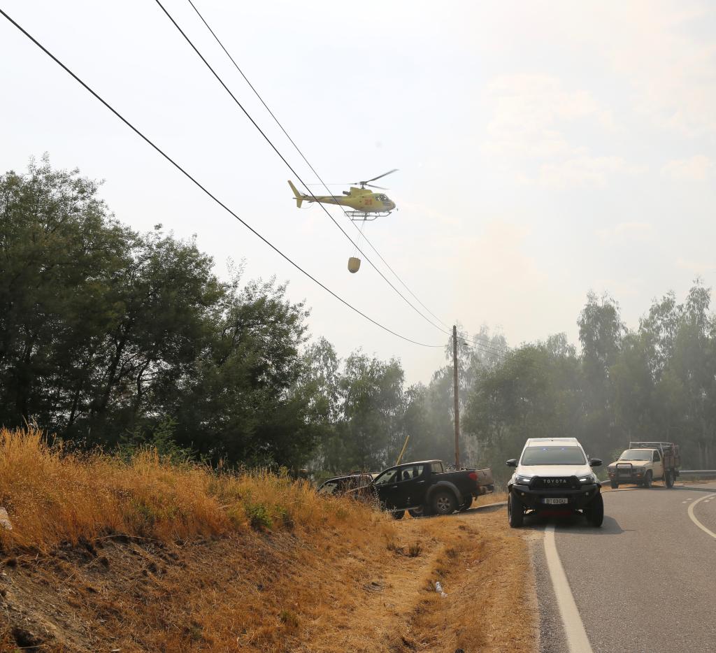 8月22日,在葡萄牙烏尼艾什-迪塞拉附近,消防人員和直升機緊急撲滅一處起火點。新華社記者荀偉攝