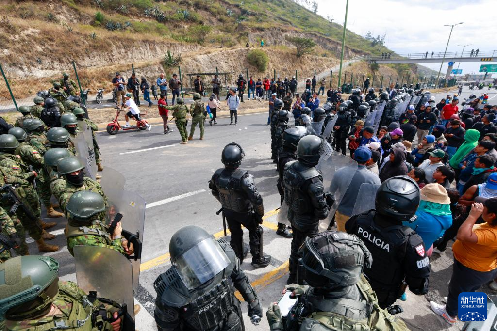 9月16日,在厄瓜多爾首都基多,武裝部隊人員在公路旁維持秩序。新華社發(fā)(里卡多·蘭德塔攝)