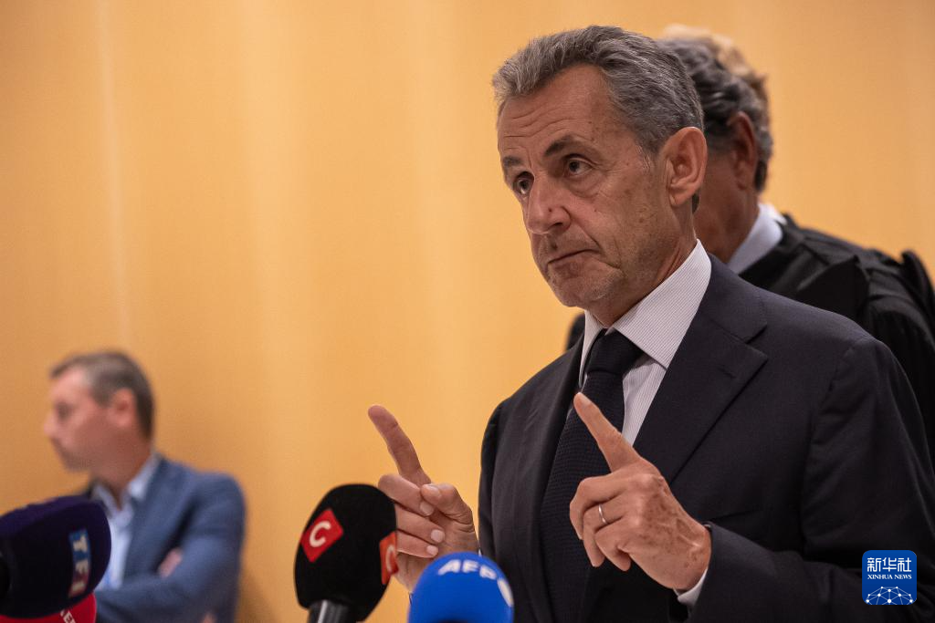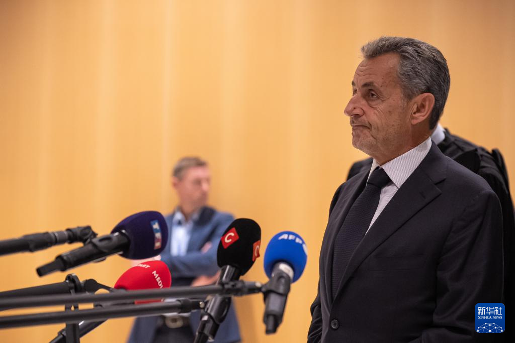 9月25日,在法國巴黎,法國前總統薩科齊在庭審后接受媒體采訪。新華社發(fā)(奧雷利安·莫里薩爾攝)