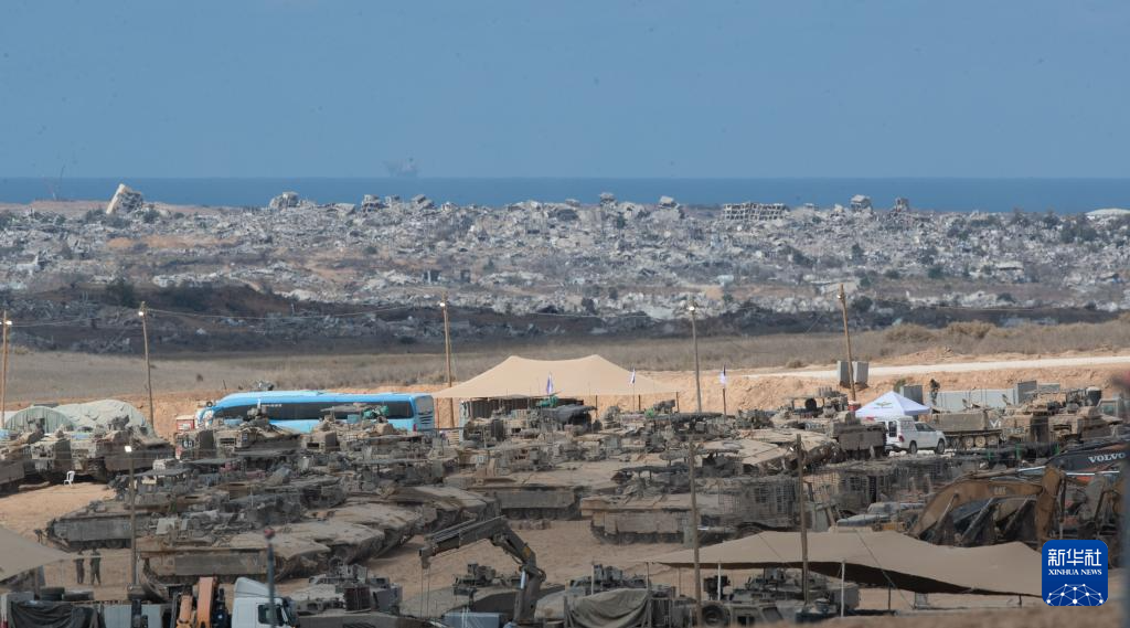 這是10月10日停火生效后拍攝的位于加沙邊境的以軍部隊(duì)。新華社記者 陳君清 攝