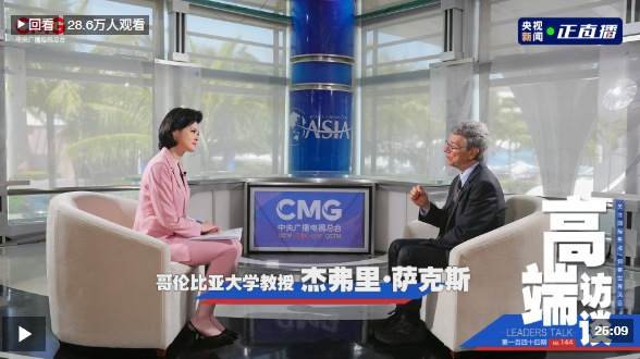 哥倫比亞大學(xué)教授杰弗里·薩克斯接受總臺《高端訪談》獨家專訪。四十多年間定期來華,深入研究中國經(jīng)濟,積極評價中國改革開放,他對中國社會、經(jīng)濟發(fā)展的充分信心源自哪里?一些國家試圖遏制中國發(fā)展,他為何評價“這個想法太荒謬了”?指出所謂“中國威脅論”背后的錯誤邏輯,展望中美關(guān)系未來發(fā)展,薩克斯如何解讀其中的關(guān)鍵所在?今天(10月10日)21:30,總臺《高端訪談》專訪哥倫比亞大學(xué)教授杰弗里·薩克斯,敬請收看!