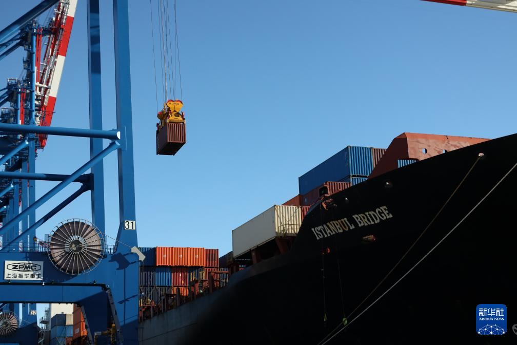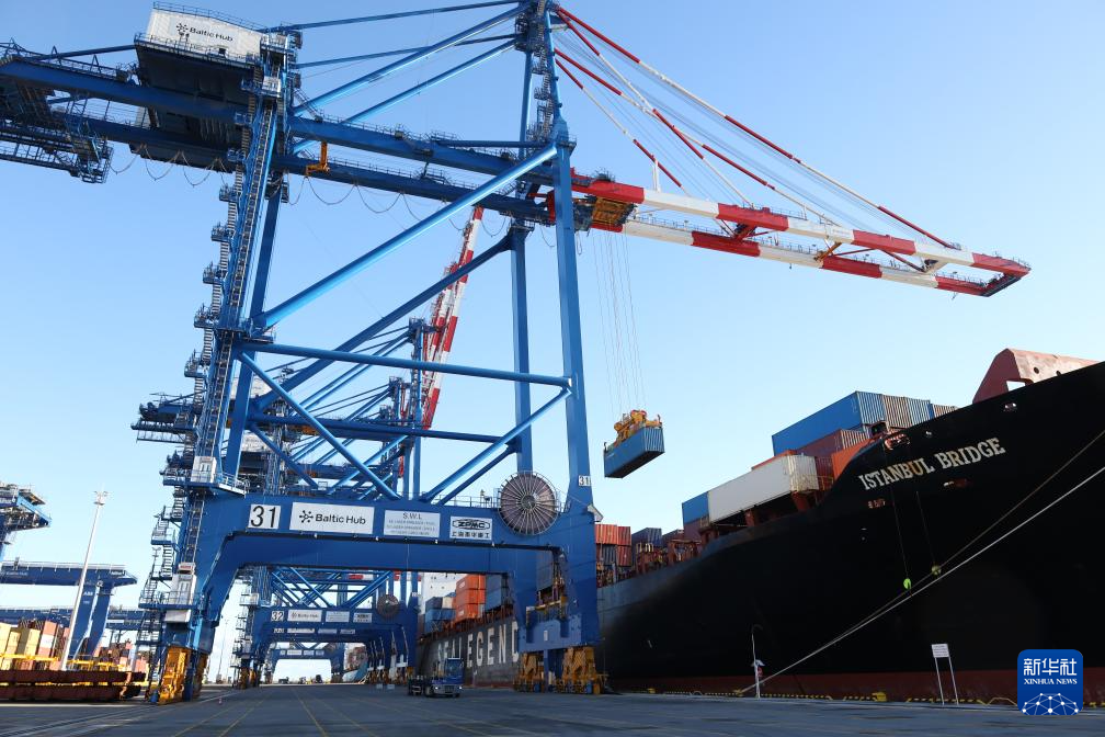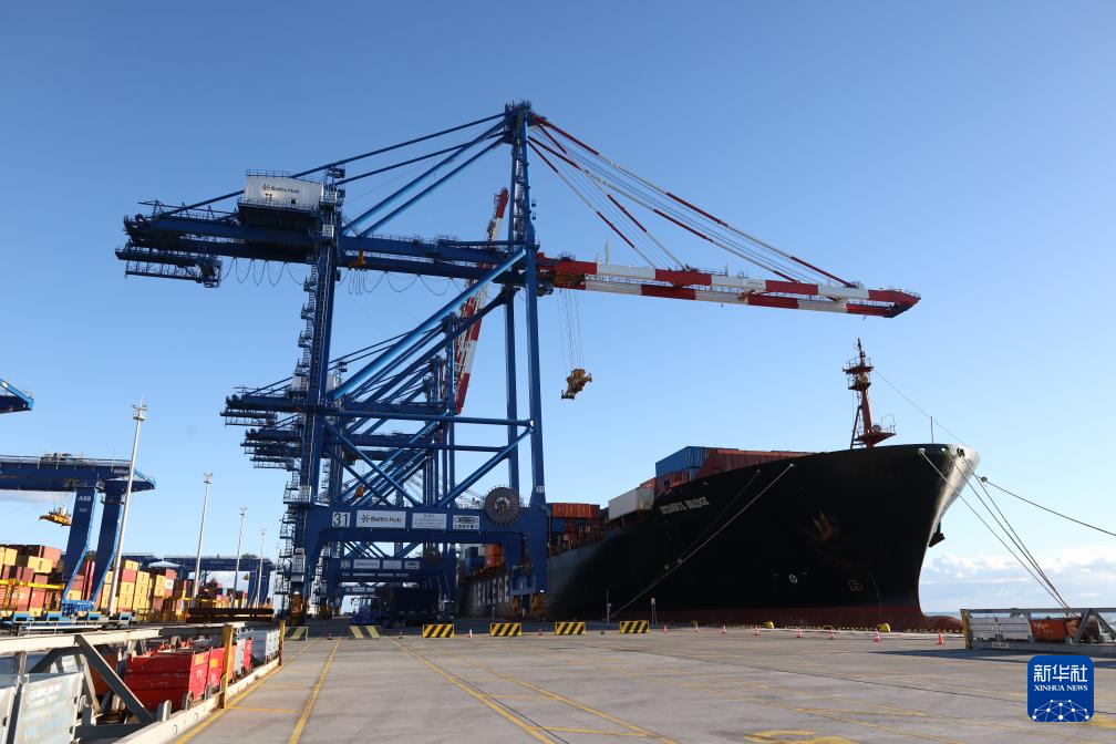 10月19日,在波蘭北部格但斯克港,從中國(guó)寧波舟山港出發(fā)的中歐北極快航航線首艘貨船進(jìn)行裝卸工作。新華社記者 崔力 攝