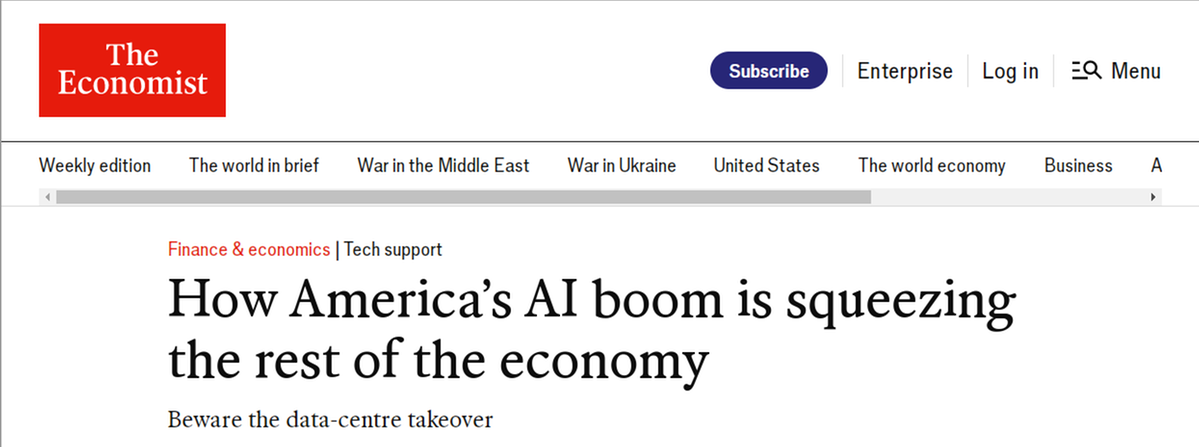 英國《經(jīng)濟(jì)學(xué)人》雜志近期評論指出,除了人工智能之外,美國經(jīng)濟(jì)的大部分領(lǐng)域似乎都顯得低迷。AI爆發(fā)式增長雖能“美化”數(shù)字,卻忽略了美國實(shí)體經(jīng)濟(jì)的空心化,導(dǎo)致GDP含金量低。