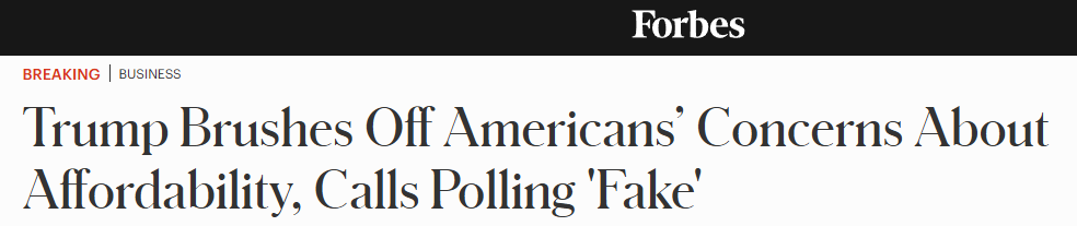 福布斯新聞網(wǎng)站報(bào)道稱,本月早些時(shí)候的調(diào)查顯示,超過四分之三的美國人對(duì)個(gè)人財(cái)務(wù)狀況感到憂慮,而政府卻質(zhì)疑民調(diào)的真實(shí)性,稱其為“虛假信息”。然而,多數(shù)民眾正經(jīng)歷的是物價(jià)上漲帶來的支出增加。盡管特朗普政府宣稱“生活成本已大幅下降”,但電費(fèi)、家具、電子產(chǎn)品及食品雜貨等價(jià)格自其就職以來便普遍上漲。