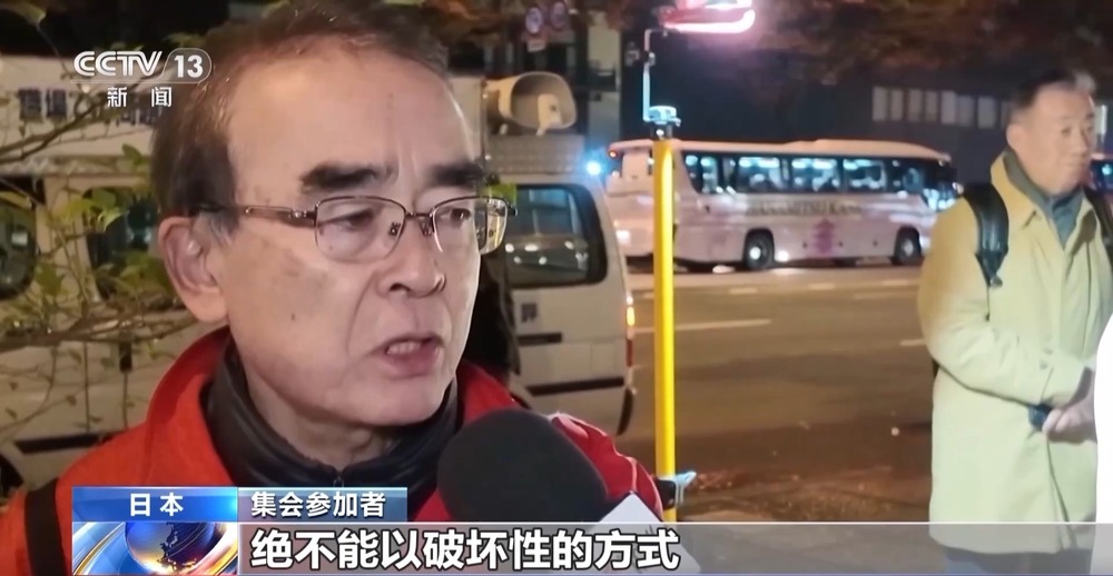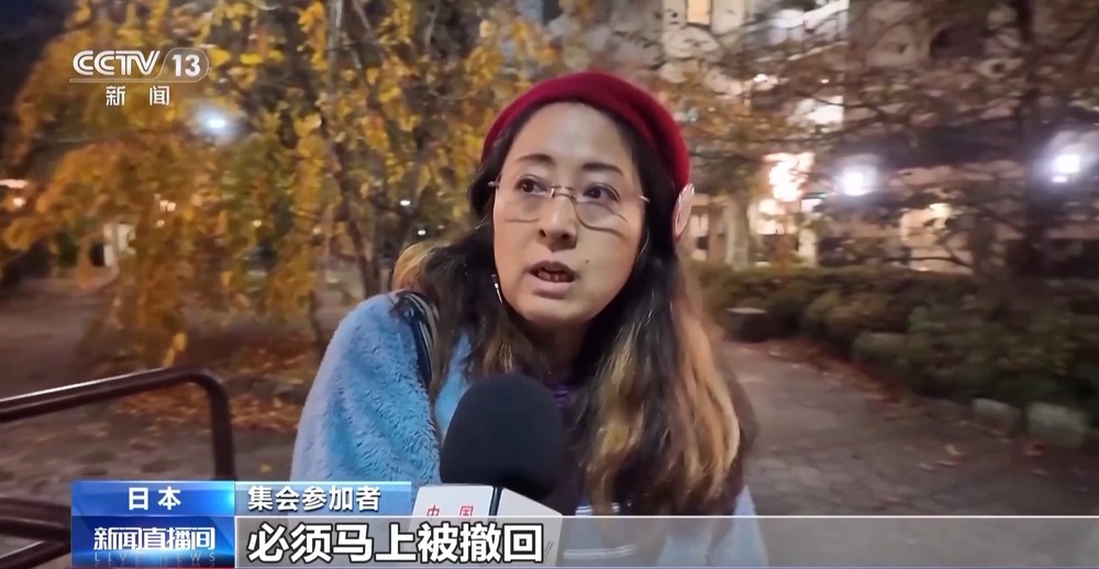 總臺記者 何欣蕾:日本首相高市早苗近期涉臺的錯誤言論在日本國內持續(xù)引發(fā)抗議和不滿。19日在京都市役所前,超過百位的當?shù)孛癖娮园l(fā)舉行集會,抗議高市的錯誤言行。像我身后的條幅,上面就寫著“不要拿臺灣作借口,挑起戰(zhàn)爭,高市早苗撤回言論”,以此來表達民眾的心聲。