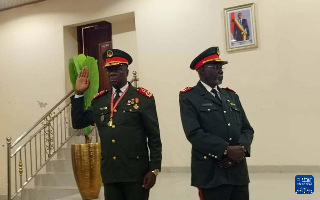 11月27日,幾內(nèi)亞比紹高級軍官奧爾塔·因塔阿(左)在首都比紹出席就職儀式(手機(jī)照片)。新華社發(fā)