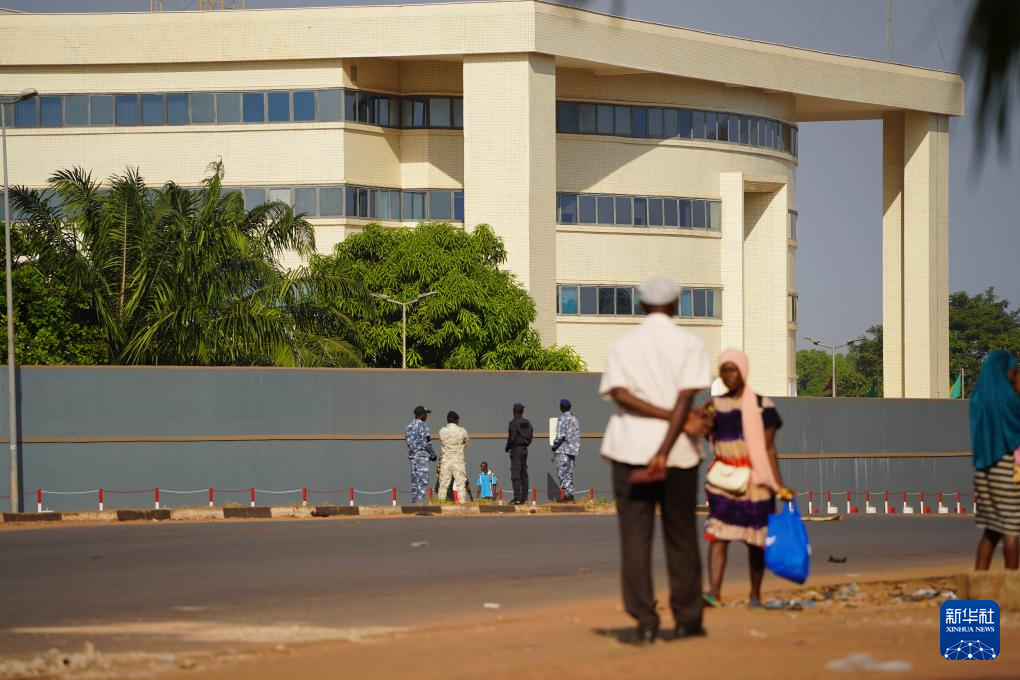 11月27日,軍人在幾內(nèi)亞比紹首都比紹一處主干道路口值守。新華社記者 司源 攝