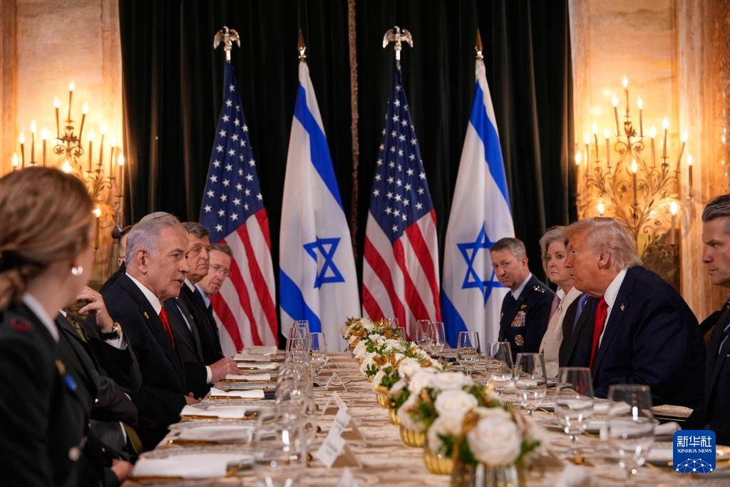 12月29日下午,美國總統(tǒng)特朗普在佛羅里達州海湖莊園會晤到訪的以色列總理內(nèi)塔尼亞胡。新華社/美聯(lián)