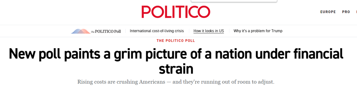 美國政客新聞網(wǎng)(Politico)12月發(fā)布的最新民調(diào)勾勒出一幅更為嚴峻的圖景:近半數(shù)美國人難以負擔雜貨、公用事業(yè)、醫(yī)療、住房和交通;因顧忌成本,27%的人不再體檢,23%的人跳過處方藥;55%的民眾將高物價歸咎于美國政府。即使在其支持者中,也有21%認為關(guān)稅目前損害經(jīng)濟。