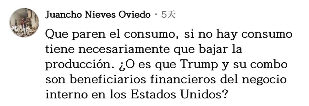 網(wǎng)友胡安喬·奧維多一針見血:“停止(毒品)消費吧,如果沒人消費,生產必然下降。莫非特朗普和他的團隊是美國國內毒品生意的受益者?”