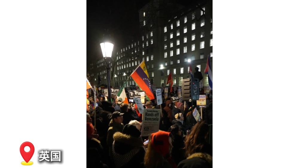 當(dāng)?shù)貢r間5日晚,大量民眾聚集在英國首相官邸唐寧街10號,抗議美國對委內(nèi)瑞拉的軍事打擊,要求英國首相斯塔默譴責(zé)美方行動。