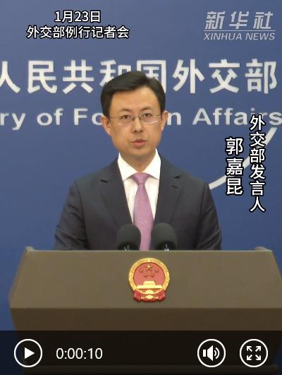 新華社北京1月23日電 外交部發(fā)言人郭嘉昆23日表示,無論形勢如何變化,中國將始終做不確定世界中的“壓艙石”,以自身發(fā)展為各國共同發(fā)展提供機(jī)遇、信心和動力。