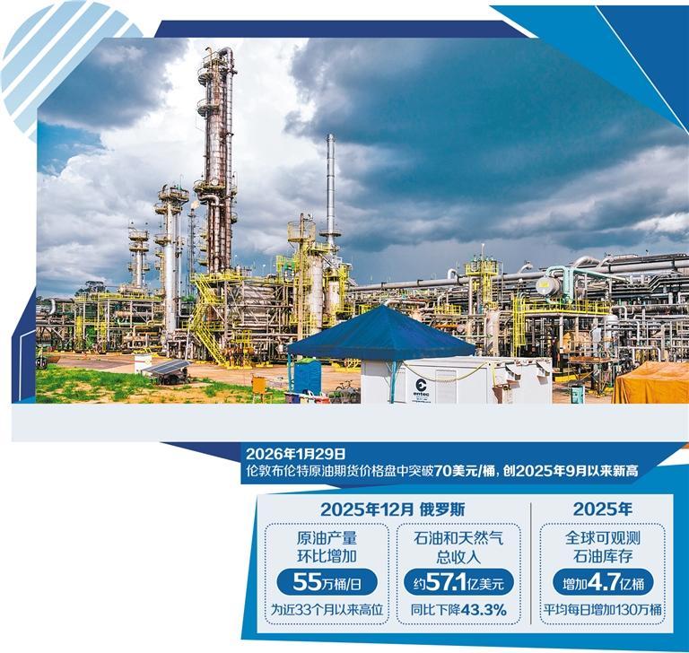 國際能源署(IEA)近日發(fā)布2026年1月《全球石油市場報告》顯示,受地緣因素擾動、美國寒潮以及美元指數(shù)走弱等影響,倫敦布倫特原油期貨價格1月29日盤中突破70美元/桶關(guān)口,創(chuàng)下2025年9月以來新高。