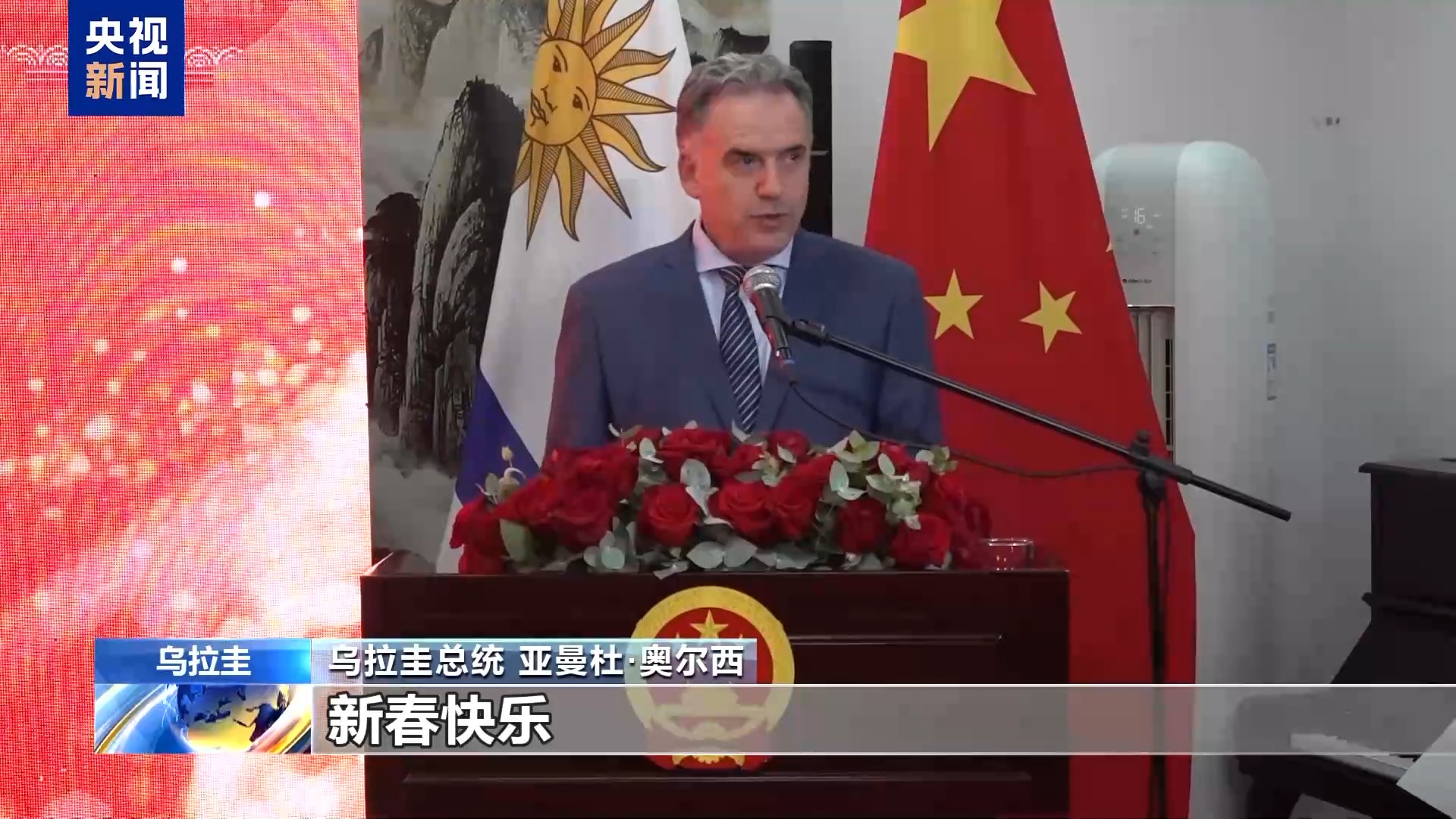 烏拉圭總統(tǒng) 亞曼杜·奧爾西:祝愿全體中國(guó)人民、全體烏拉圭人民新春快樂(lè)。非常感謝大家,祝大家新春快樂(lè),春節(jié)快樂(lè)。