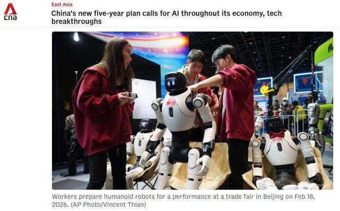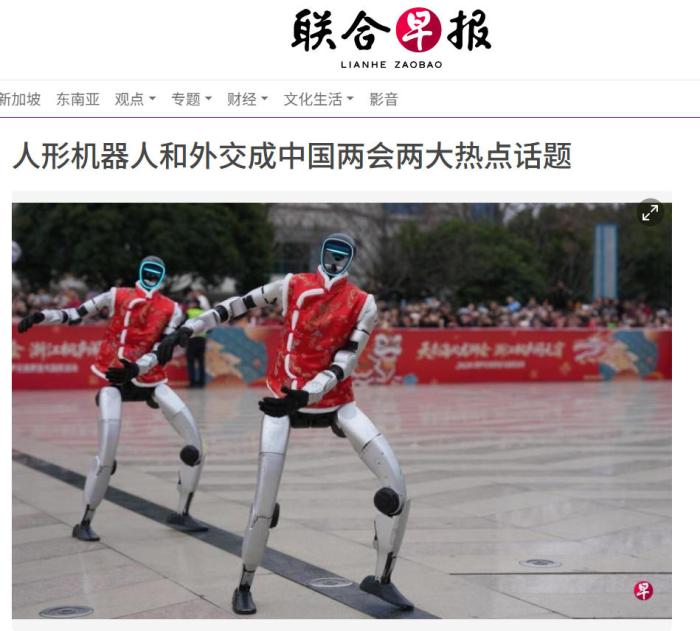 新加坡《聯(lián)合早報(bào)》報(bào)道稱,中國(guó)多家人形機(jī)器人公司在春晚舞臺(tái)上的武術(shù)表演吸引全球目光,相關(guān)產(chǎn)業(yè)獲得輿論高度關(guān)注,這股熱潮延續(xù)至2026年中國(guó)全國(guó)兩會(huì)上,不少人工智能相關(guān)的企業(yè)人士在會(huì)場(chǎng)外成為媒體格外關(guān)注的對(duì)象。