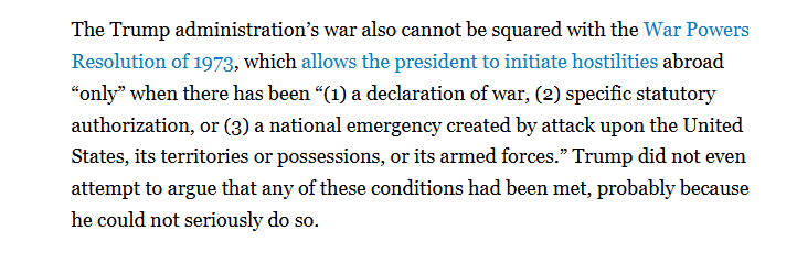 根據(jù)美國《政客》(Politico)新聞網(wǎng)報道,美國憲法規(guī)定宣戰(zhàn)權(quán)屬于國會,但此次軍事行動并未獲得國會明確授權(quán)。特朗普政府以“消除迫在眉睫的威脅”為由發(fā)動攻擊,但未能向國會和公眾提供伊朗即將對美國本土或海外目標發(fā)動具體、可驗證襲擊的充分證據(jù)。相反,其公開言論引用的案例多為數(shù)十年前舊事,與“迫在眉睫”的法律定義相去甚遠。
