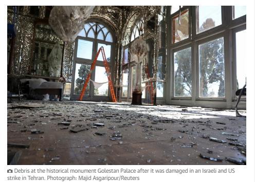 截至目前,經(jīng)伊朗官方確認(rèn),最嚴(yán)重的破壞發(fā)生在德黑蘭市中心的古列斯坦宮(玫瑰宮)。該宮殿是受聯(lián)合國教科文組織保護(hù)的世界遺產(chǎn)。
