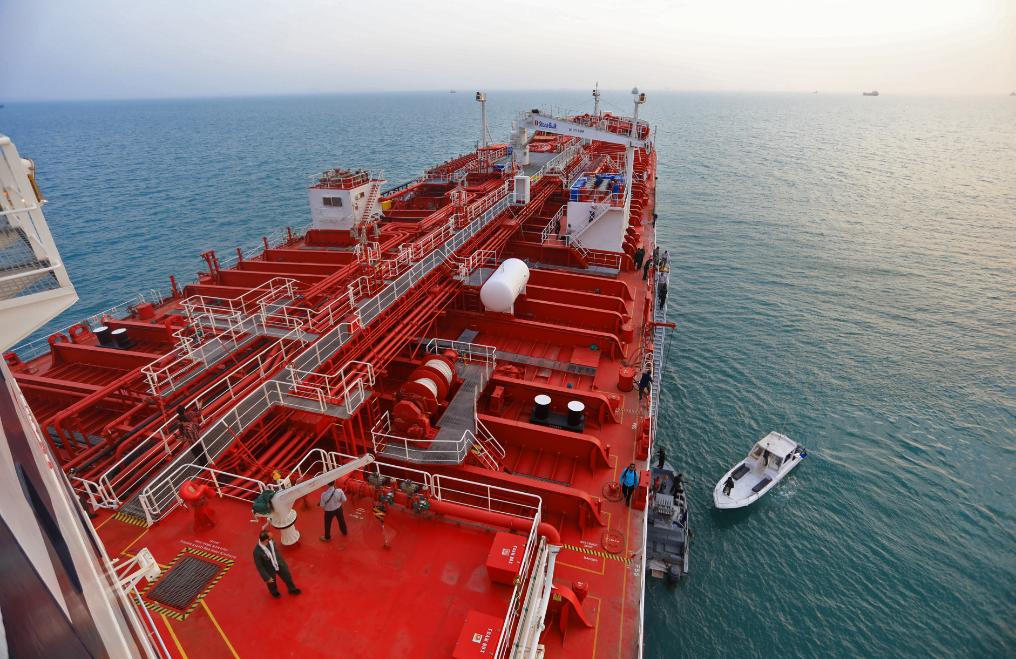 這是2019年7月21日在霍爾木茲海峽附近拍攝的英國(guó)籍油輪“史丹納帝國(guó)”號(hào)。新華社/伊朗學(xué)生通訊社