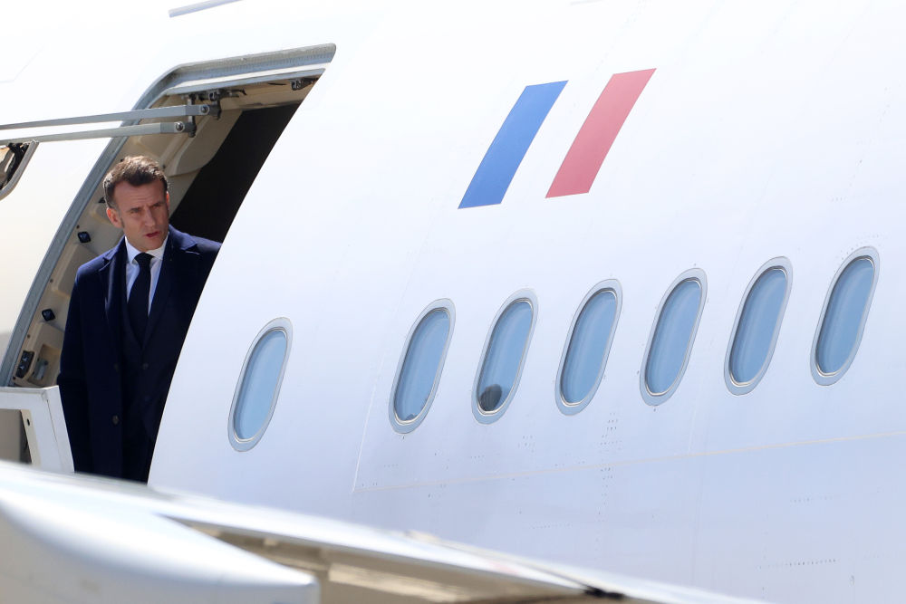 3月9日,法國(guó)總統(tǒng)馬克龍抵達(dá)塞浦路斯西南部的帕潘德里歐空軍基地。新華社發(fā)(喬治·克里斯托弗魯攝)