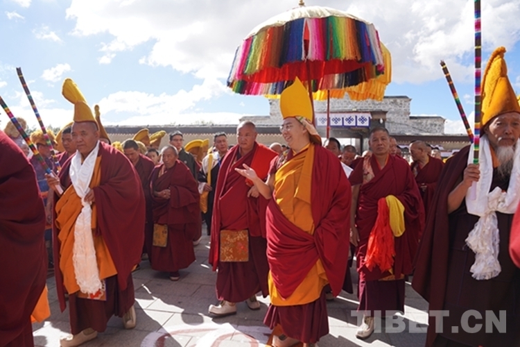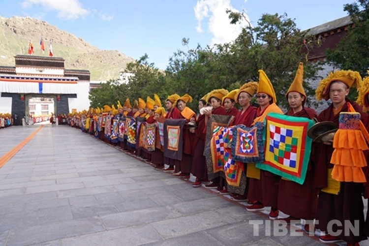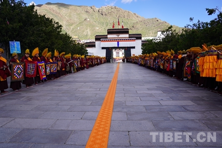 當天,扎什倫布寺裝扮一新,寶頂流彩,金碧輝煌,寺院大門前信眾摩肩接踵翹首以盼,通往寺廟大殿的道路兩側(cè)僧眾比肩而立列隊歡迎,整個寺院沉浸在祥和、莊重、熱烈的氣氛中。