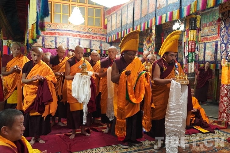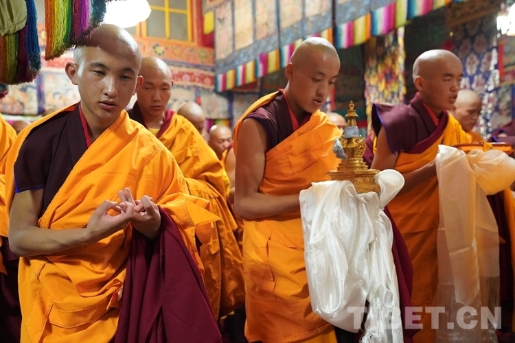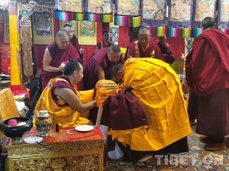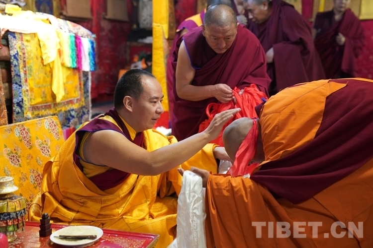 中國(guó)西藏網(wǎng)訊 11月4日,即藏歷九月二十二日是藏傳佛教傳統(tǒng)的“降神節(jié)”,降神節(jié)藏語(yǔ)稱(chēng)“拉波堆慶”。在這特殊的日子里,全國(guó)政協(xié)常委、中國(guó)佛教協(xié)會(huì)副會(huì)長(zhǎng)、中國(guó)佛協(xié)西藏分會(huì)會(huì)長(zhǎng)班禪額爾德尼·確吉杰布,為日喀則市江孜縣重孜寺生欽·旦巴熱杰活佛授予比丘戒暨為扎什倫布寺部分年輕僧人傳授沙彌戒儀式在扎什倫布寺拉讓殿舉行。