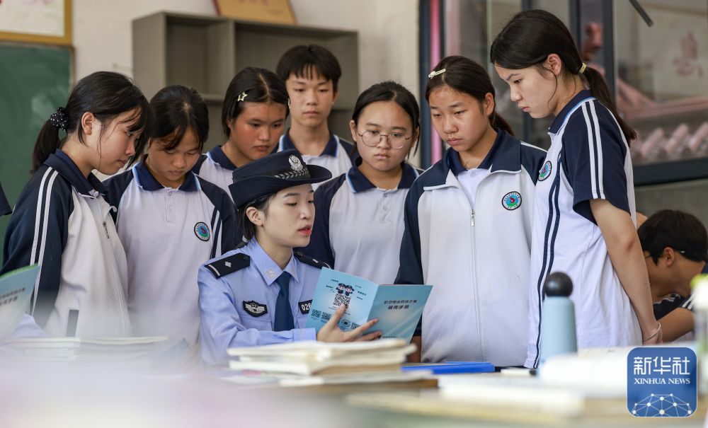 9月15日,民警在貴州省銅仁市玉屏侗族自治縣黔東民族寄宿制中學(xué)給學(xué)生普及網(wǎng)絡(luò)安全知識(shí)。新華社發(fā)(胡攀學(xué)攝)