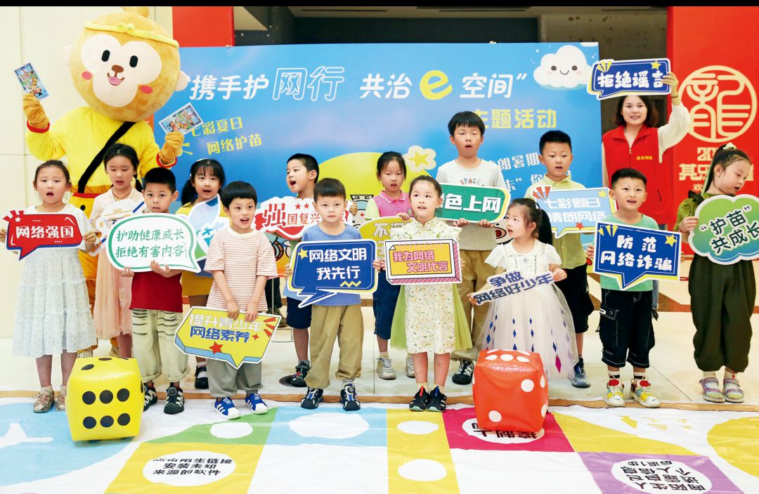 △2024年7月,江蘇省連云港市舉辦主題活動,通過快樂有趣的互動體驗,讓文明上網(wǎng)、安全用網(wǎng)理念走進孩子們的心中。