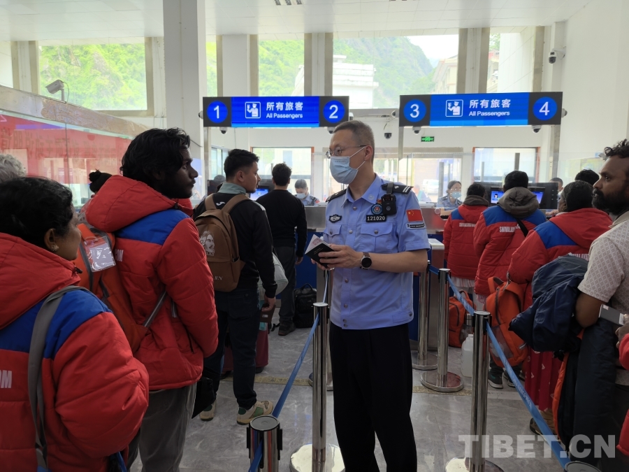 圖為聶拉木邊檢站民警為旅客解答出入境政策