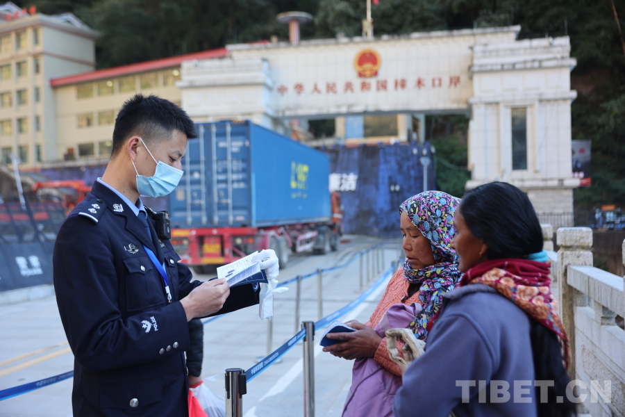 圖為聶拉木邊檢站民警對出入境人員的證件進(jìn)行抽檢