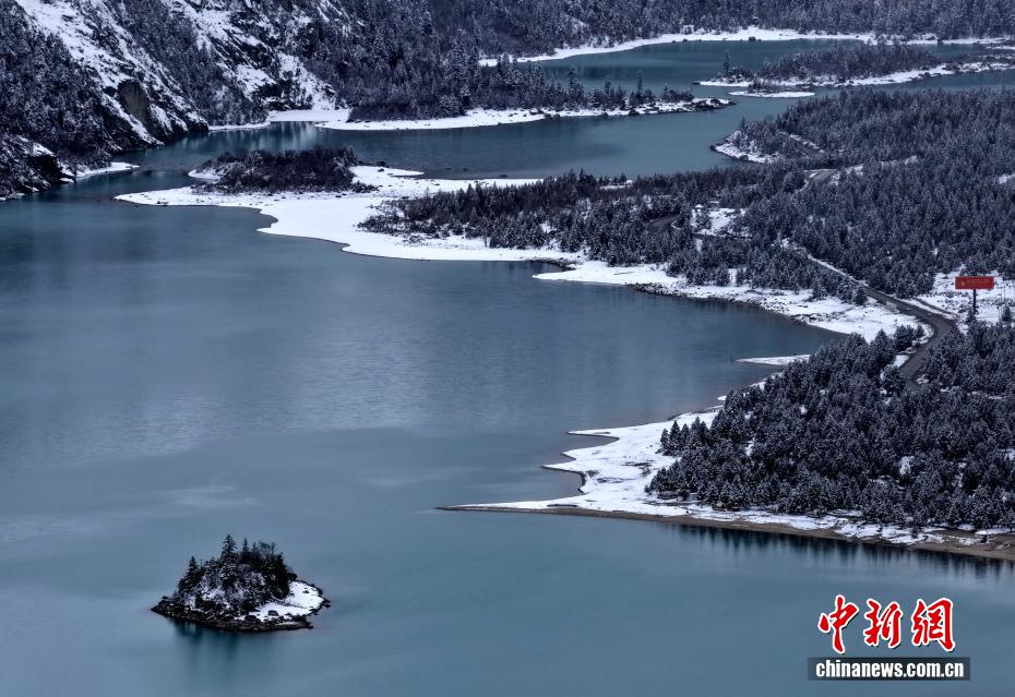 3月25日,西藏昌都然烏湖雪后景色。然烏湖位于西藏昌都市八宿縣然烏鎮(zhèn)境內(nèi),是山體滑坡或泥石流堵塞河道而形成的堰塞湖。雪后然烏湖湖水如翠,美如畫卷。中新社記者 李林 攝(無人機照片)