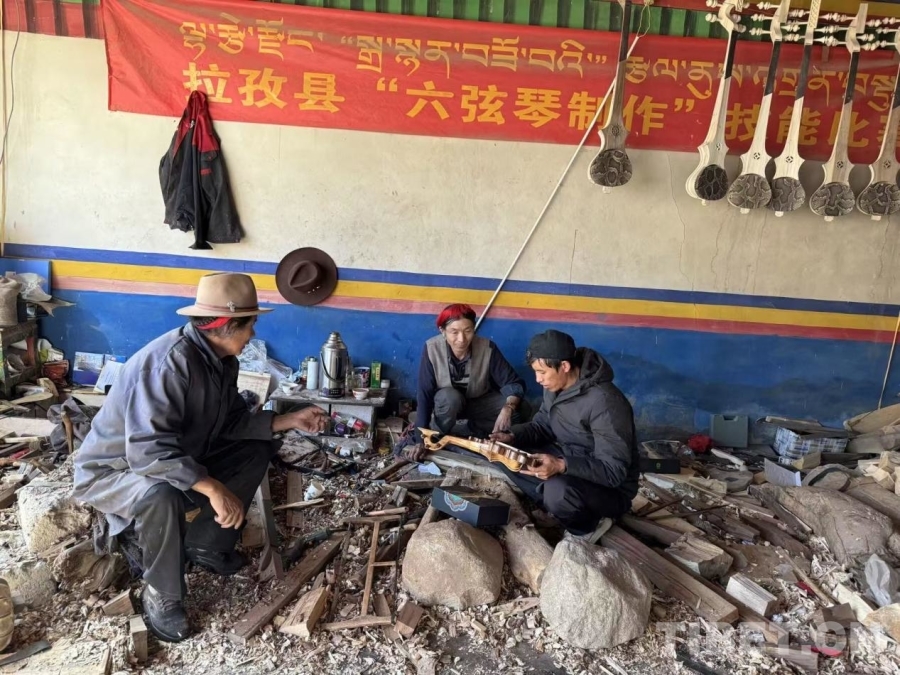 圖為達(dá)瓦格桑在詢問記錄扎念琴制作工序