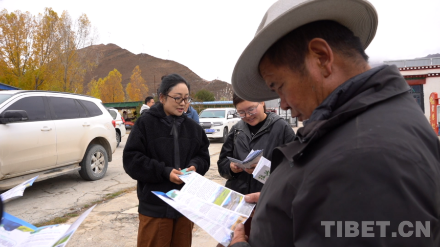2025年10月19日,邊巴卓瑪(左一)在拉薩市墨竹工卡縣,向涉及自然資源統(tǒng)一確權登記鄉(xiāng)(鎮(zhèn))、村以及當?shù)厝罕娭v解政策