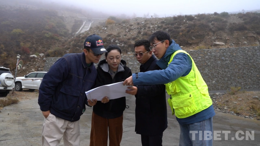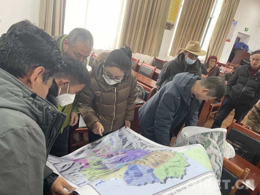 2024年11月28日,邊巴卓瑪(左二)在拉薩市曲水縣對西藏才納森林公園自然資源統(tǒng)一確權登記工作實地督導