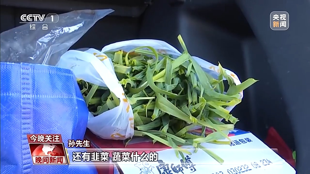孫先生:我爸媽也是從老家?guī)Я艘恍╇u蛋、雞肉,還有韭菜、蔬菜什么的。其實(shí)這東西,哪都能買到,但是爸媽還是不放心。即便是現(xiàn)在三十幾歲了,但是爸媽還是對(duì)我們像小孩一樣溫馨。