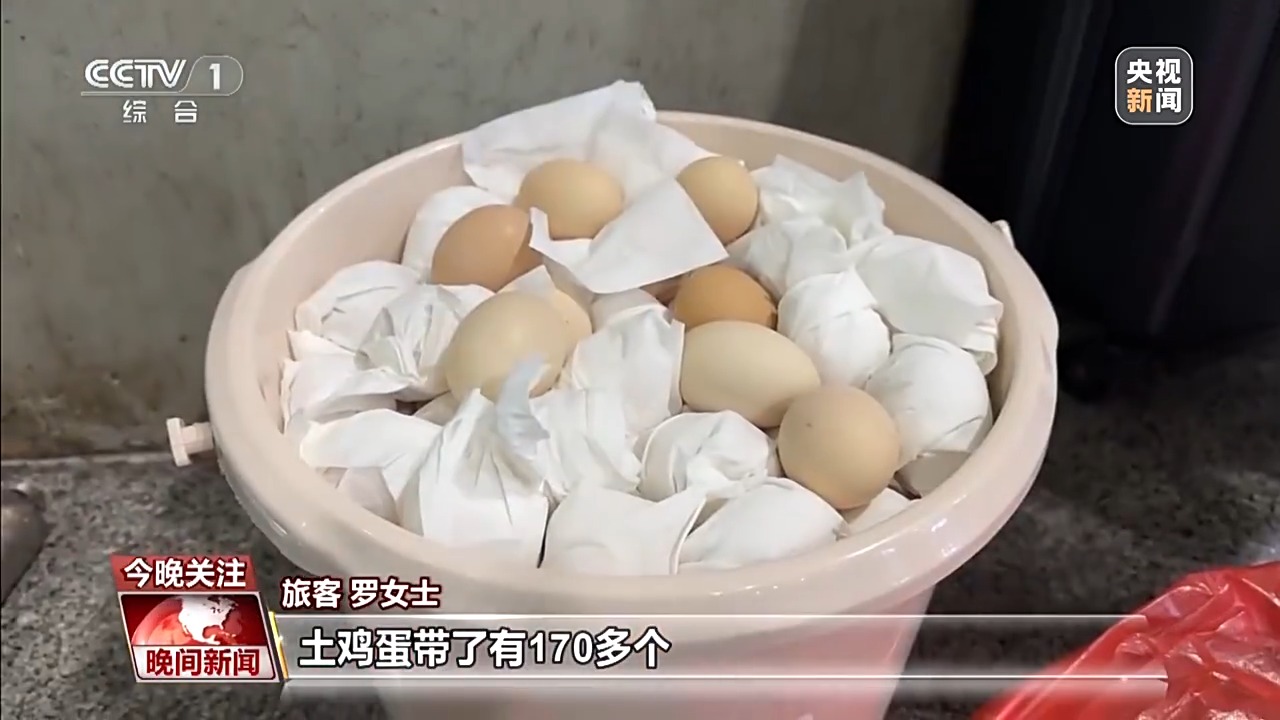 旅客 羅女士:土雞蛋帶了有170多個(gè),給兒媳婦還有女兒,她們每一個(gè)拿點(diǎn),她們都在成都上班。老家?guī)н^來的土雞蛋,味道不一樣,吃起來香嘛。