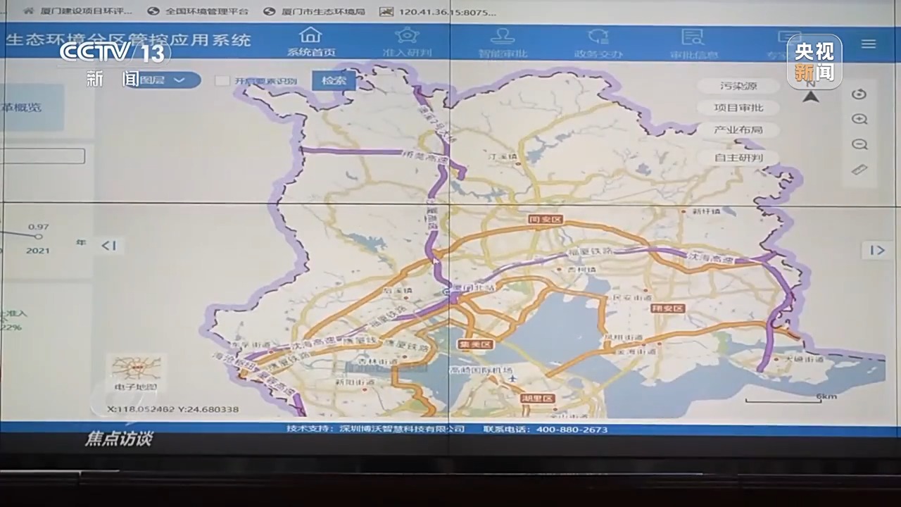 福建廈門市生態(tài)環(huán)境局環(huán)評(píng)處處長(zhǎng) 詹源:我們?cè)谙到y(tǒng)里面融入了國土空間、市政設(shè)施、產(chǎn)業(yè)布局以及生態(tài)環(huán)境,一共有207個(gè)矢量圖層,在這里面可以查看到空間信息、污水管網(wǎng)設(shè)置、產(chǎn)業(yè)布局規(guī)劃等信息。同時(shí),我們還梳理了10萬多條準(zhǔn)入條件,形成了分區(qū)管控的智慧內(nèi)核。