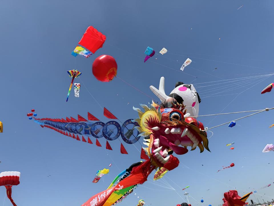 隨著風箏工藝的發(fā)展和演進,濰坊風箏的制作技藝不斷豐富和改進,新材料、新技術的應用也讓現(xiàn)代風箏的題材多元、造型奇巧。這也就出現(xiàn)了每年的濰坊國際風箏會上“萬物皆能上天”的景象。