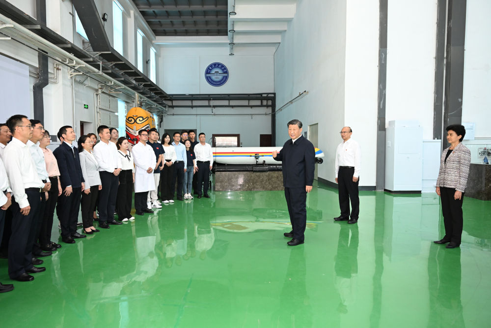 2023年9月6日至8日,習近平在黑龍江考察。這是7日上午,習近平在哈爾濱工程大學考察時,同師生代表親切交流。
