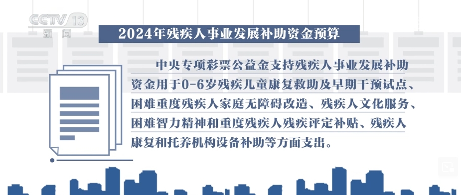 財政部4月26日下達了2024年殘疾人事業(yè)發(fā)展補助資金預(yù)算,包括,一般公共預(yù)算資金和中央專項彩票公益金支持殘疾人事業(yè)發(fā)展補助資金。