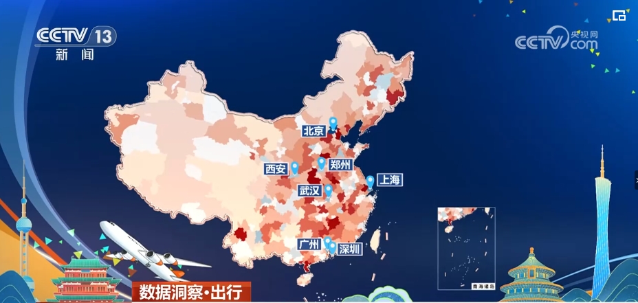 這是一張根據(jù)12306火車(chē)票預(yù)售數(shù)據(jù)繪制的熱力圖,紅色越深代表在5月1日乘火車(chē)凈流入到這個(gè)城市的人越多,藍(lán)色越深則表示凈流出這里的人越多??梢钥吹?,北上廣深、武漢、鄭州、西安等中心城市是凈流出人數(shù)較多的城市。
