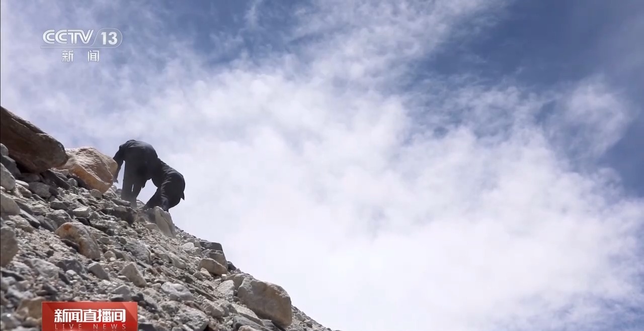 負(fù)責(zé)珠峰核心區(qū)域巡邏的是珠峰邊境派出所的民警們,每次邊境踏查,民警們要在海拔5300米—6000多米的山路上徒步8個(gè)多小時(shí),全程40多公里。這一次的巡邏,兩名剛?cè)肼毜拿窬布尤肓诉M(jìn)來。