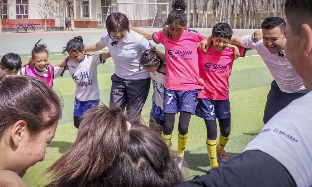 足球賽奪冠,不是第一次了,學(xué)校已經(jīng)連續(xù)多年蟬聯(lián)阿克陶縣校園聯(lián)賽女子組冠軍,連縣城賣馕的大叔都知道,且克村小學(xué)的女足很厲害。但這一次有點(diǎn)不一樣,是因?yàn)閮杉虑橹械牧硪患?,是中?guó)女足前主教練水慶霞要來(lái)看她們的比賽,帶她們訓(xùn)練。