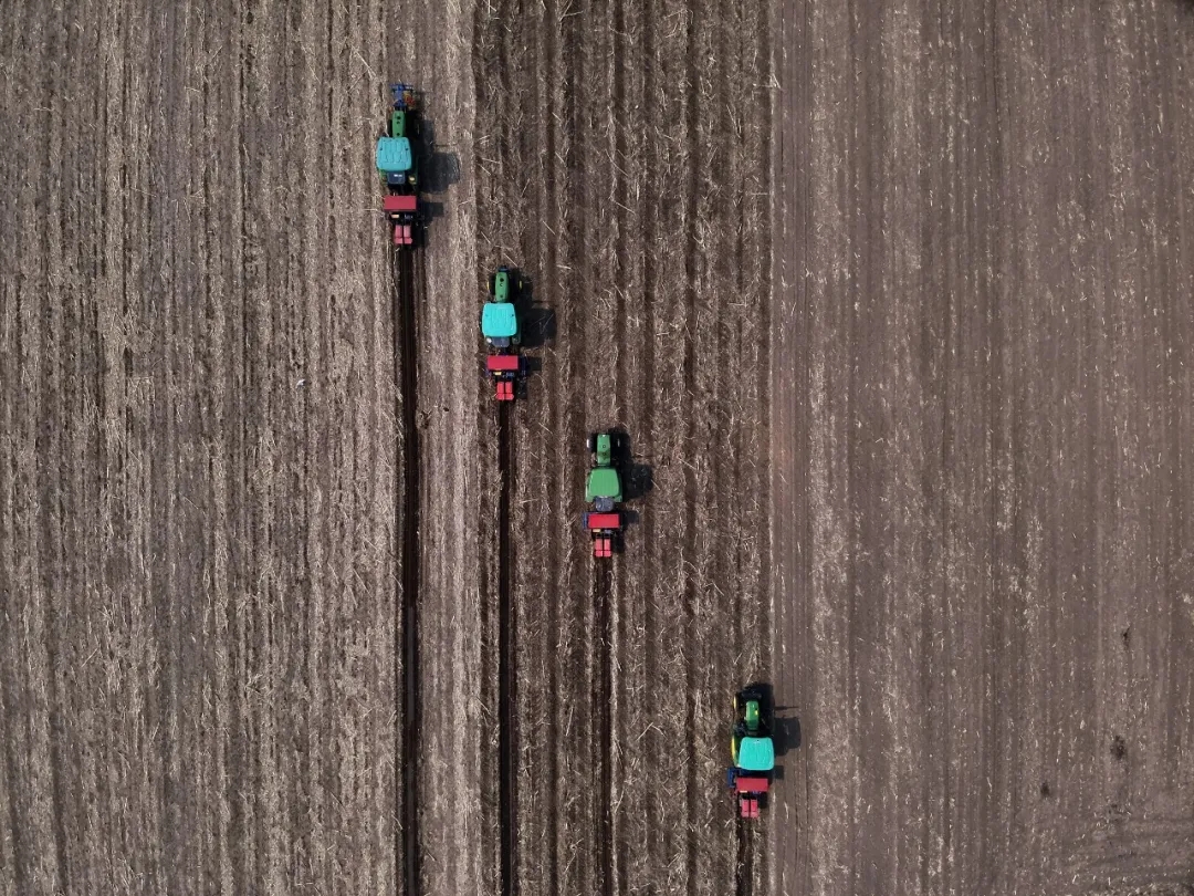 梨樹縣蔡家鎮(zhèn)敬友村誠(chéng)農(nóng)農(nóng)機(jī)農(nóng)民專業(yè)合作社的社員們駕駛大型智慧化播種機(jī)播種玉米。隨著天氣逐漸轉(zhuǎn)暖,梨樹縣大田播種逐漸拉開帷幕。據(jù)了解,2024年梨樹縣春播農(nóng)作物種植計(jì)劃393.9萬(wàn)畝,其中,玉米339萬(wàn)畝、大豆17萬(wàn)畝、水稻10.04萬(wàn)畝、薯類2.8萬(wàn)畝、其他農(nóng)作物播種25.06萬(wàn)畝。郭敢峰 本報(bào)記者錢文波 攝