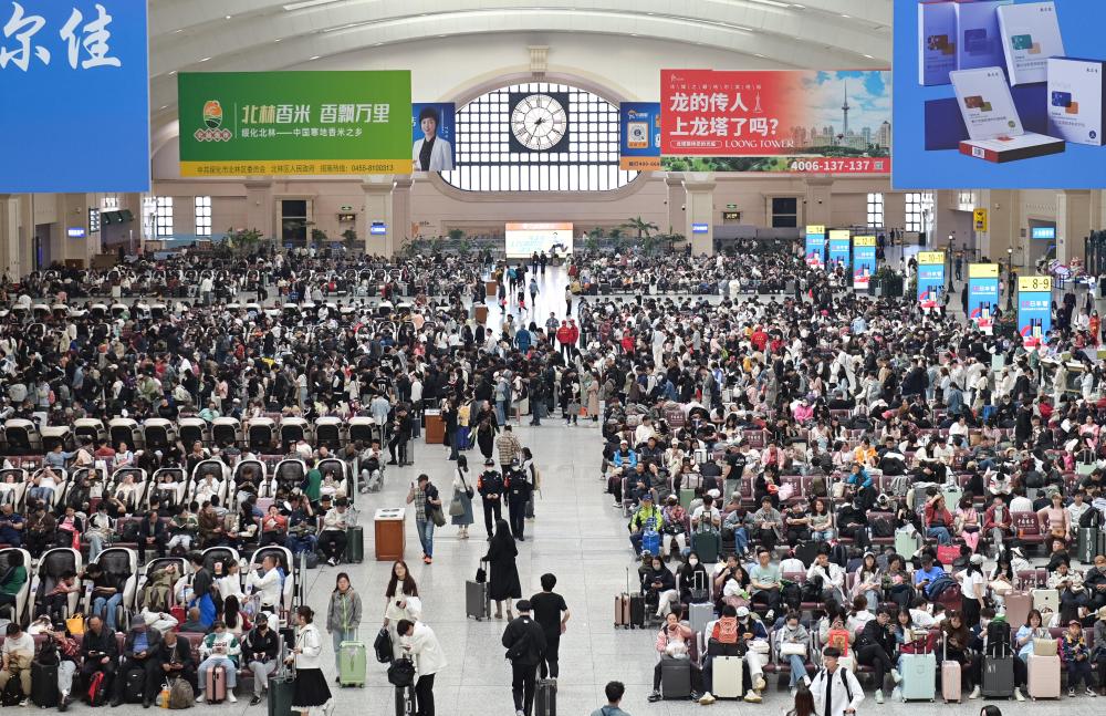 5月1日,出行旅客在哈爾濱火車(chē)站候車(chē)廳內(nèi)候車(chē)。新華社發(fā)(原勇攝)