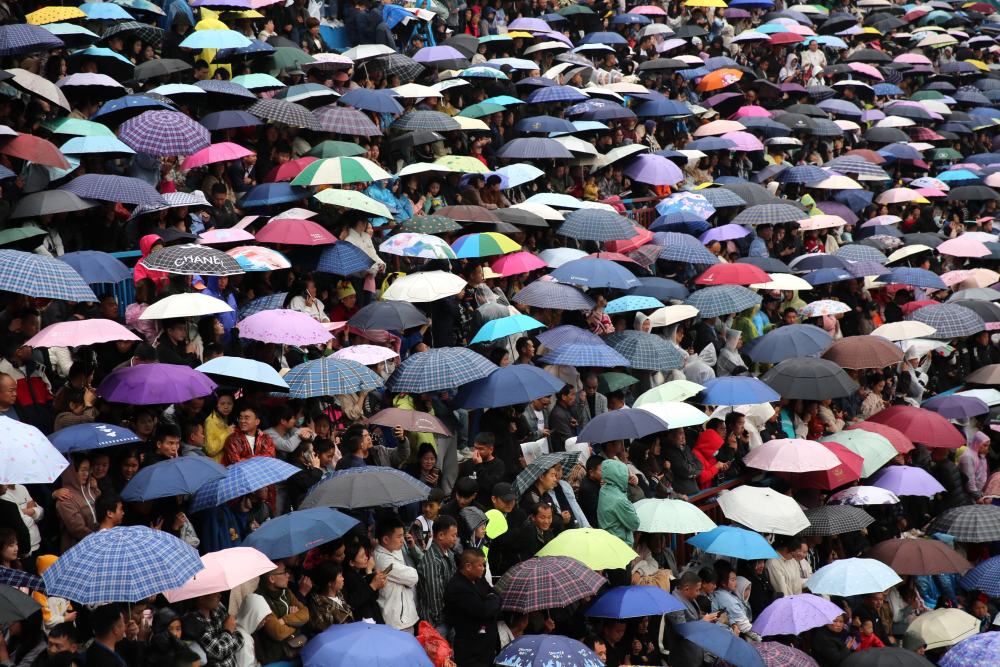 5月1日,人們?cè)谫F州省黔東南苗族侗族自治州臺(tái)江縣臺(tái)盤(pán)鄉(xiāng)臺(tái)盤(pán)村觀看“村BA”球王爭(zhēng)霸賽。新華社發(fā)(余天英 攝)