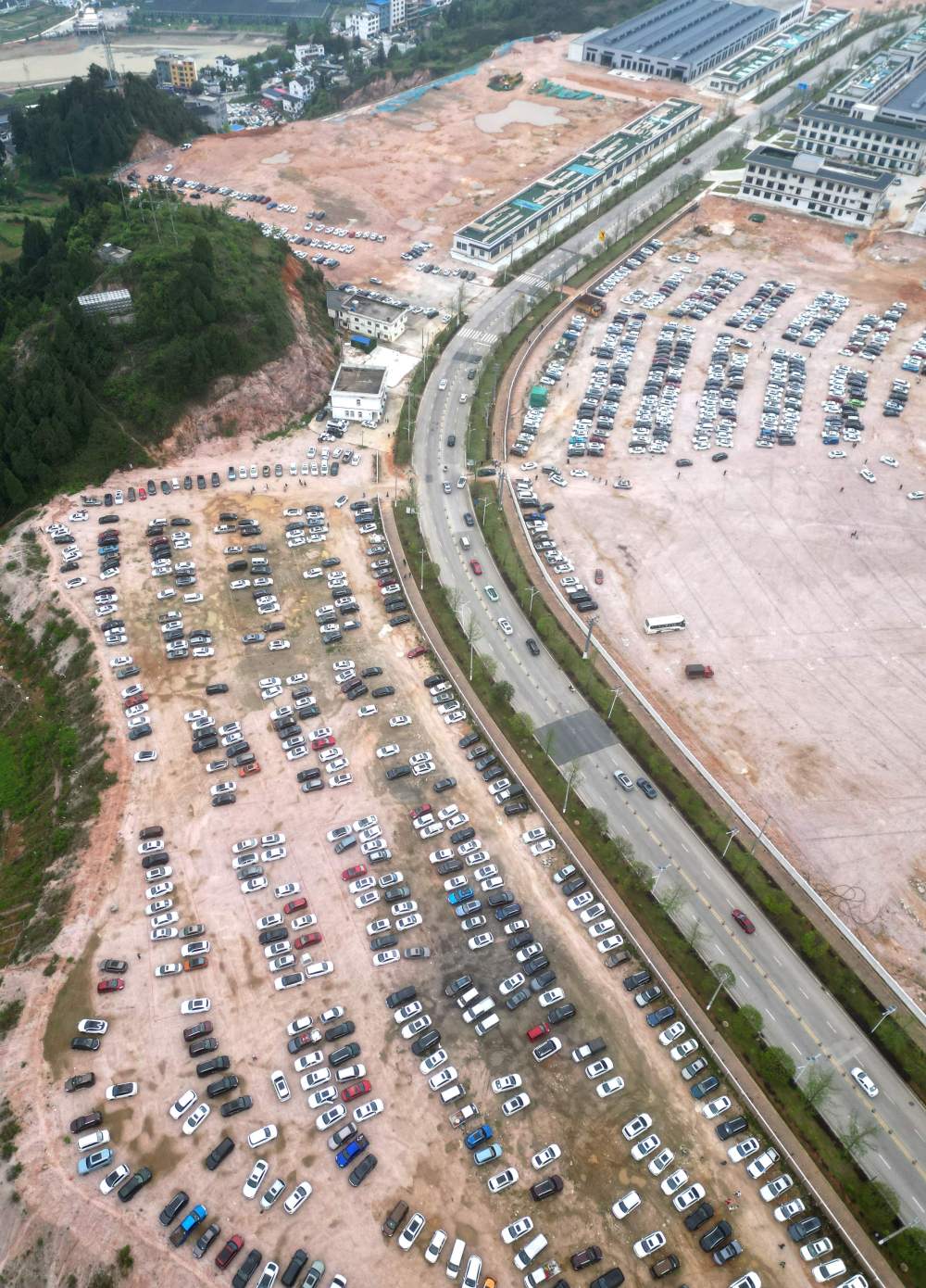 5月1日,游客車(chē)輛在貴州省黔東南苗族侗族自治州臺(tái)江縣臺(tái)盤(pán)村停車(chē)(無(wú)人機(jī)照片)。為了滿足外地游客觀看“村BA”的需求,當(dāng)?shù)乩瞄e置空地規(guī)劃設(shè)置免費(fèi)臨時(shí)停車(chē)場(chǎng),增加車(chē)位7000余個(gè),供游客免費(fèi)停車(chē)。新華社發(fā)(余天英 攝)