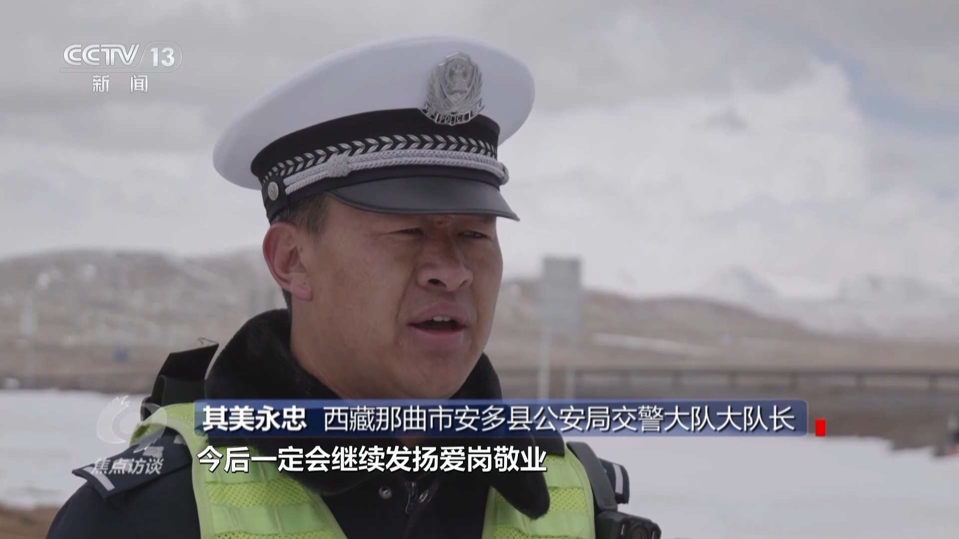 西藏那曲市安多縣公安局交警大隊(duì)大隊(duì)長(zhǎng) 其美永忠:這個(gè)榮譽(yù)不是我個(gè)人的,是我們大隊(duì)的榮譽(yù)。今后一定會(huì)繼續(xù)發(fā)揚(yáng)愛崗敬業(yè)、艱苦奮斗、甘于奉獻(xiàn),把群眾服務(wù)好,把“天路”守護(hù)好。